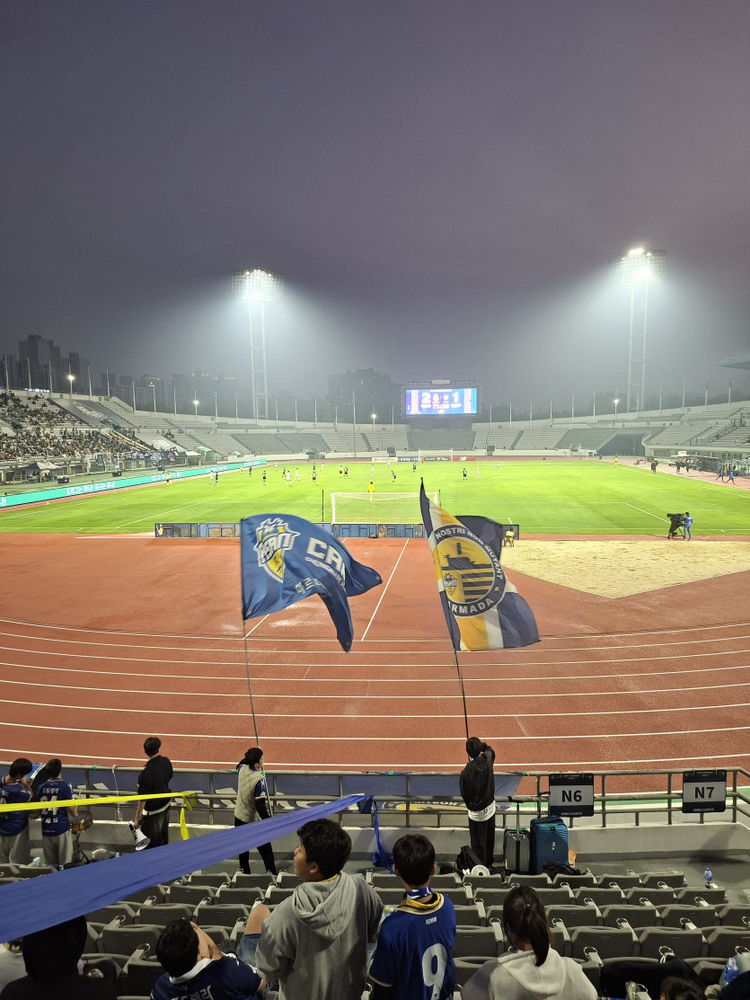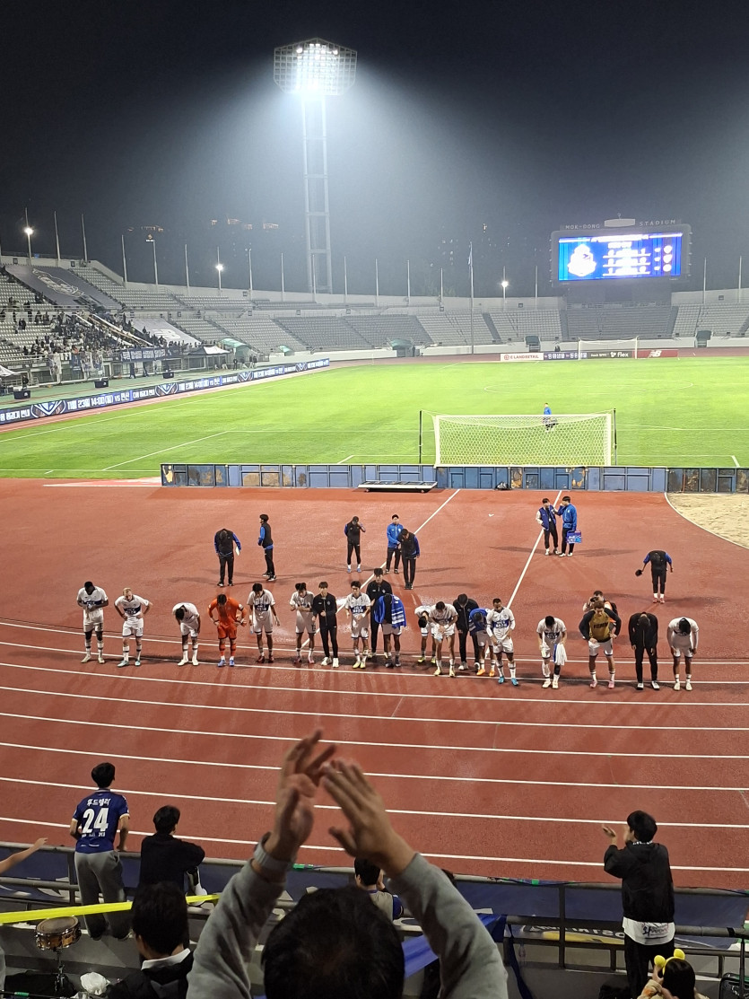 지난 주 김포전은 건너뛰었습니다. 무슨 모습을 보든 감당할 자신이 없었기 때문입니다. 선수들은 득점이 나왔을 때 그리고 경기가 끝났을 때 한데 모여 크게 기뻐했습니다. 선수단이 원하는 건 바깥의 잡음이 심각해도 팀다운 모습을 보이고 함성으로 인정받는 게 아닐까 싶었습니다. 그 마음을 지켜주고 싶어 토요일 밤에 경기장에 가기로 결정했습니다.